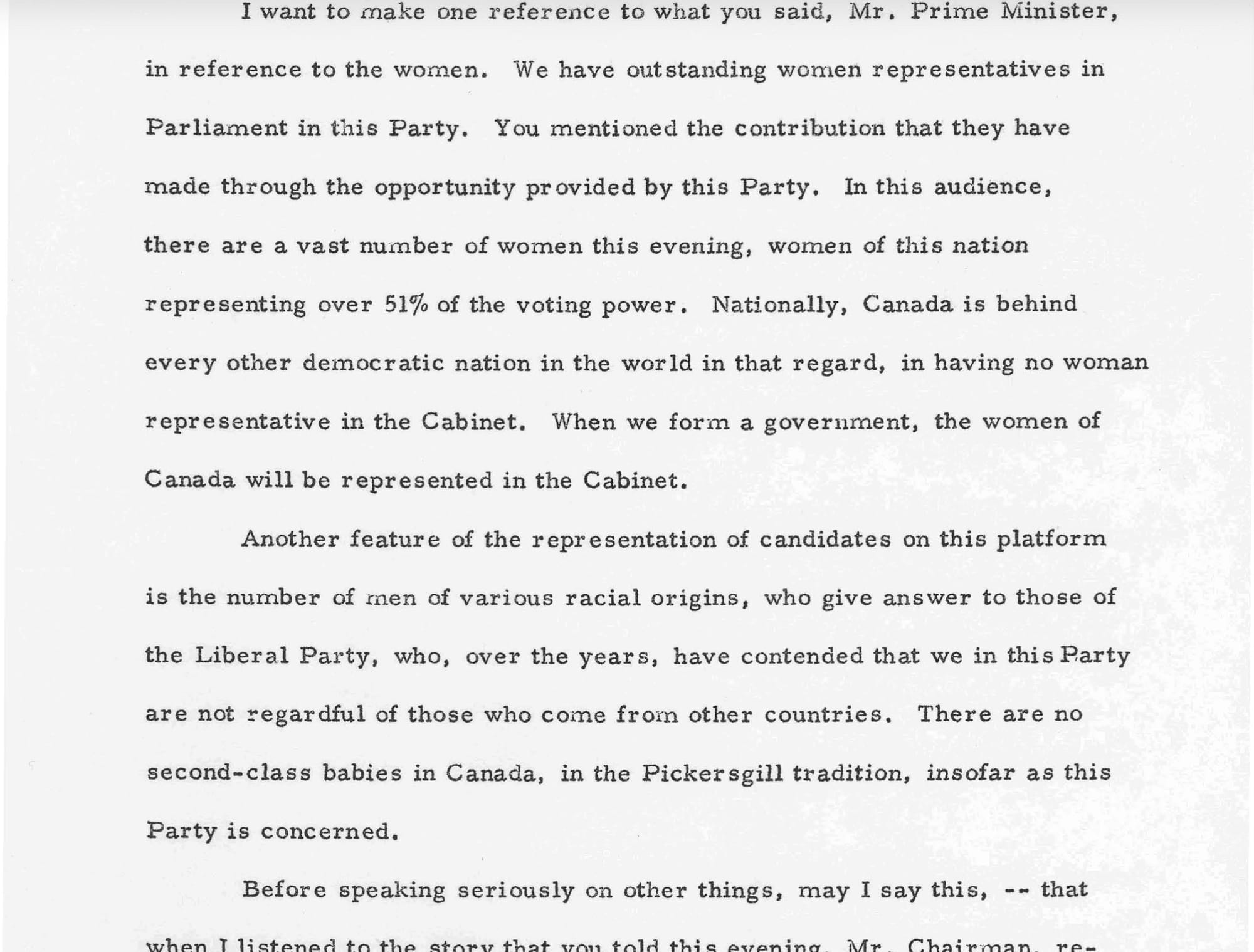 He was a civil rights activist, an anti-racist (at least for his time), he believed in the Canadian Bill of Rights, and he fought against apartheid in South Africa. I’ve mentioned him in many different articles because he’s awesome. First prime minister to put women in his cabinet. A warrior for the freedom of religion and belief. I should do a profile on him or something.