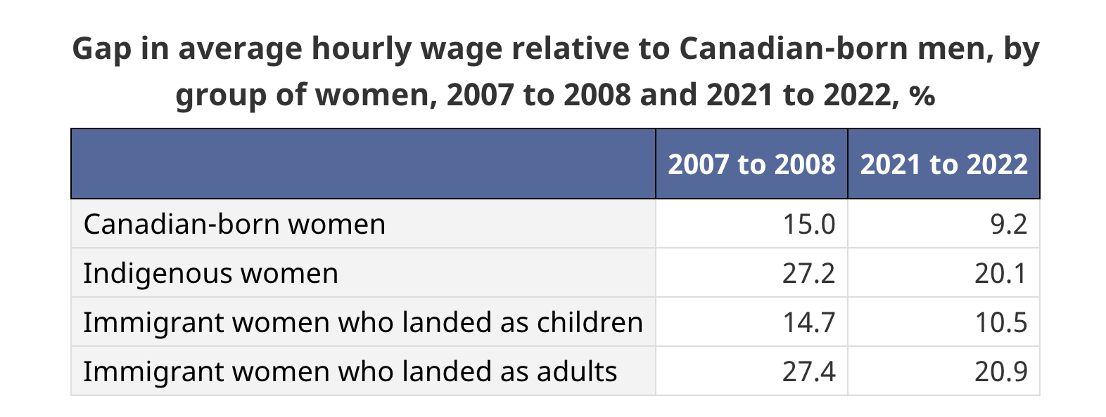 Taken from statistics Canada